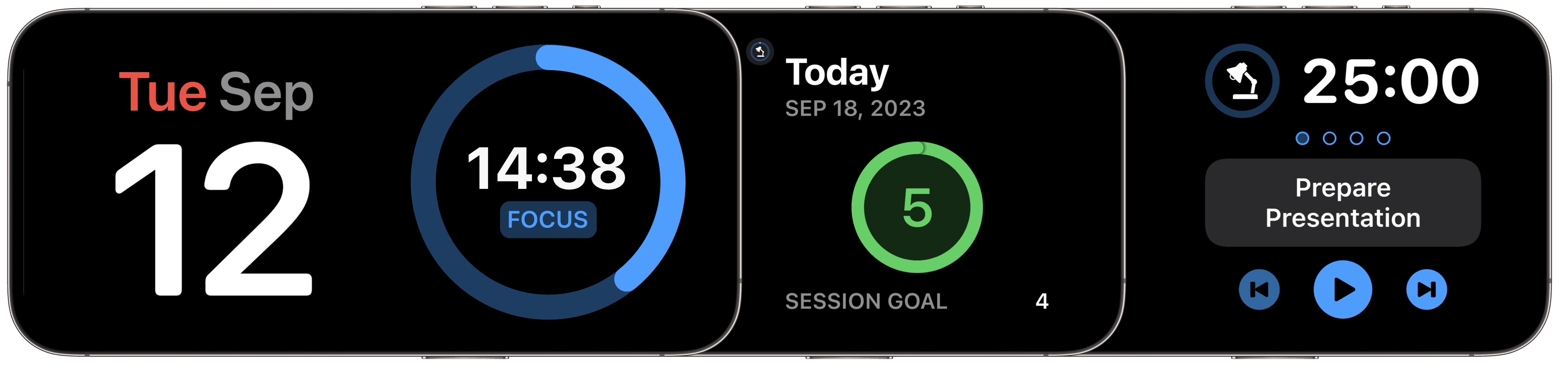 Focus has a clean, minimalist design that helps you stay focused on what matters: getting your work done. If you love a simple look, make sure to check out the new minimalist Home Screen widgets and StandBy widgets as well!