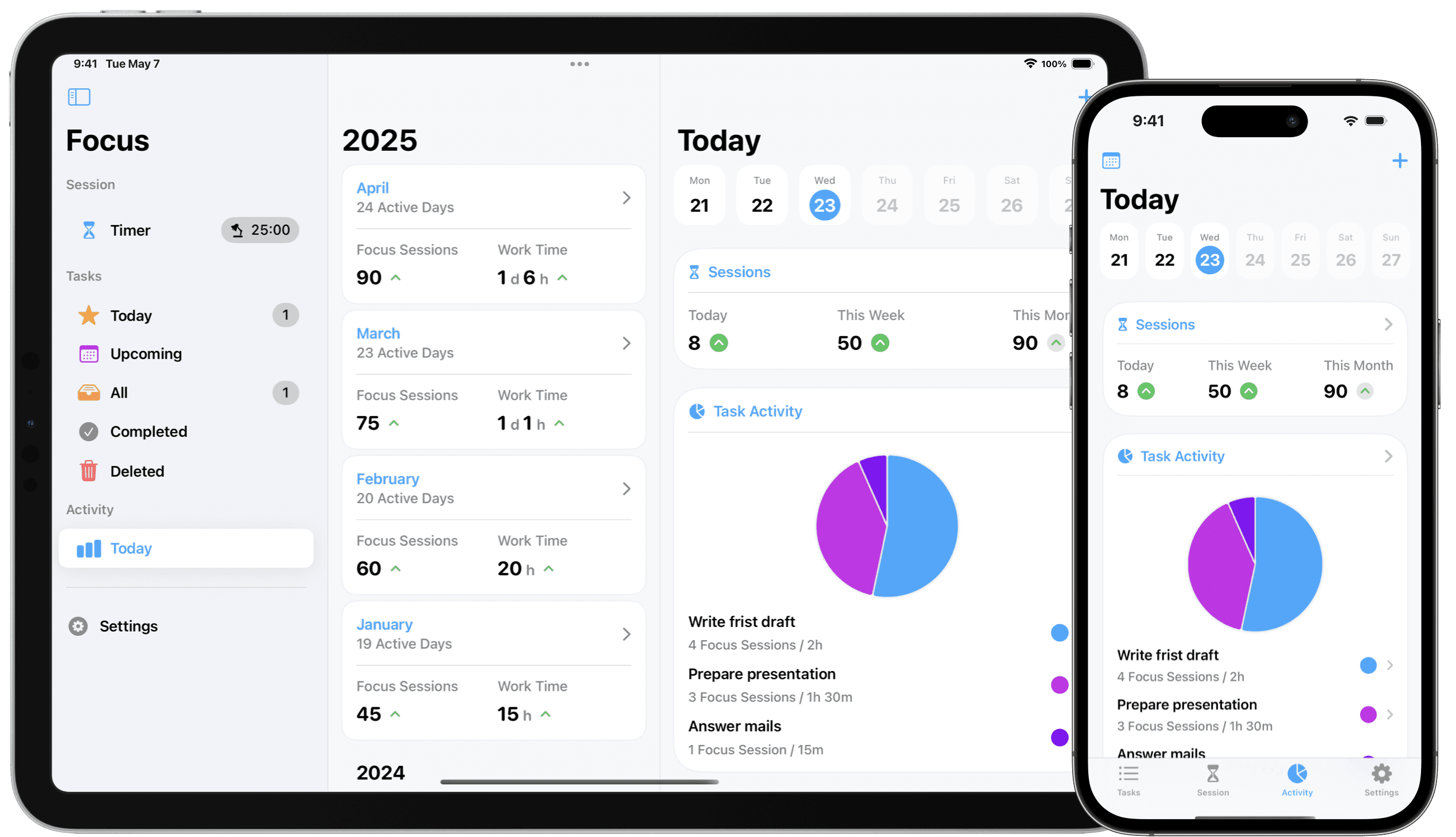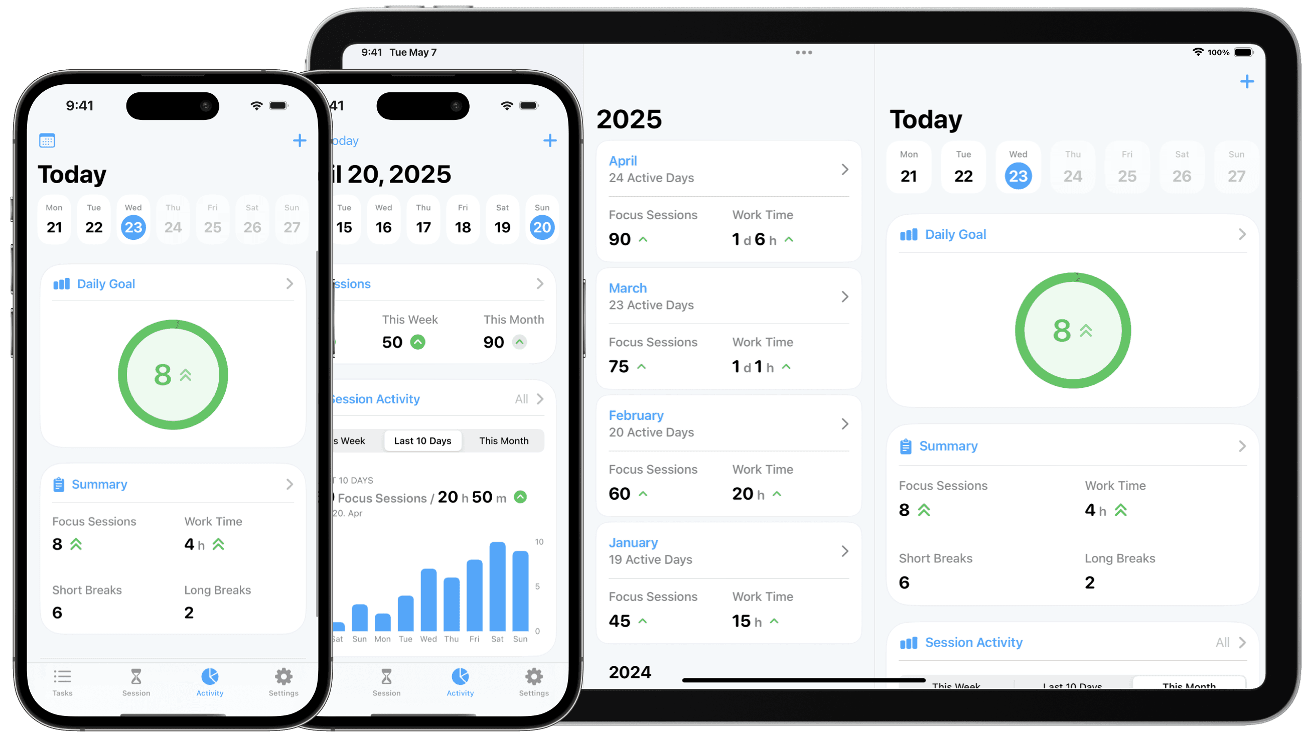 All-new productivity statistics and time tracking for your Pomodoro timer!
