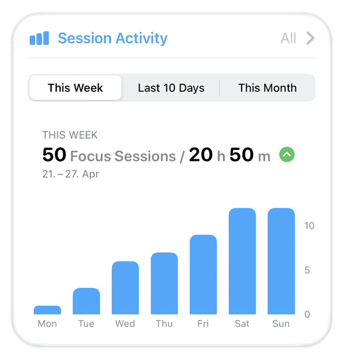 It can be hard to show up every day and stay productive. Having a track record of your focused work helps you visualize your progress, build a habit of deep focus, and stay motivated – so you can finish your day feeling good about what you’ve achieved.