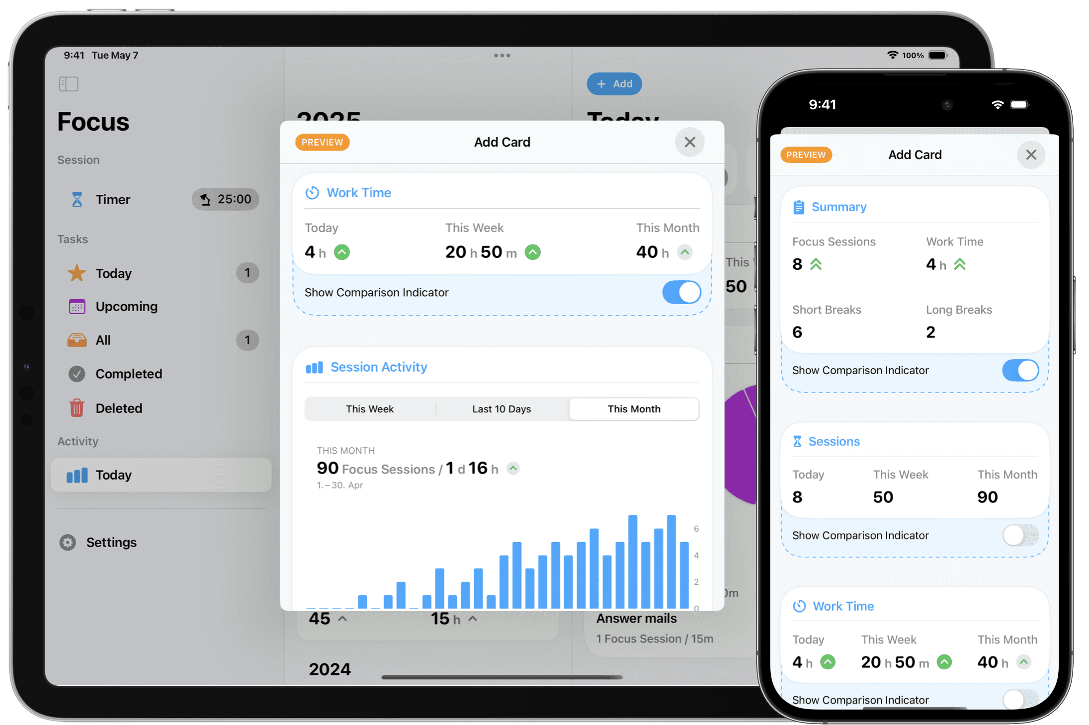 Everyone works differently – and now Focus reflects that. The redesigned Activity view is now fully customizable, giving you the power to tailor Focus to your own style and preferences.